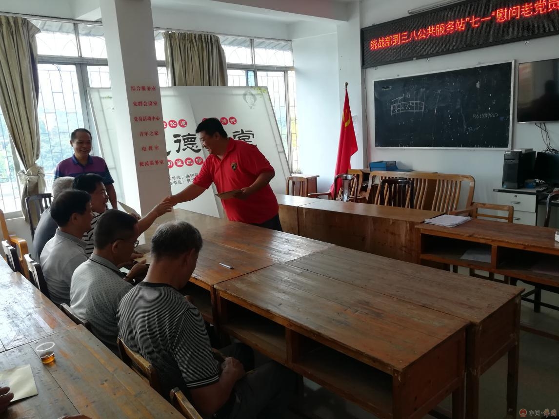 之后,范福新同志代表县委统战部为老党员送上慰问金,并鼓励他们,不管何时何地都要坚定党的信念,不忘初心,牢记使命,为党为社会主义事业做出积极的贡献。(廖紫青)