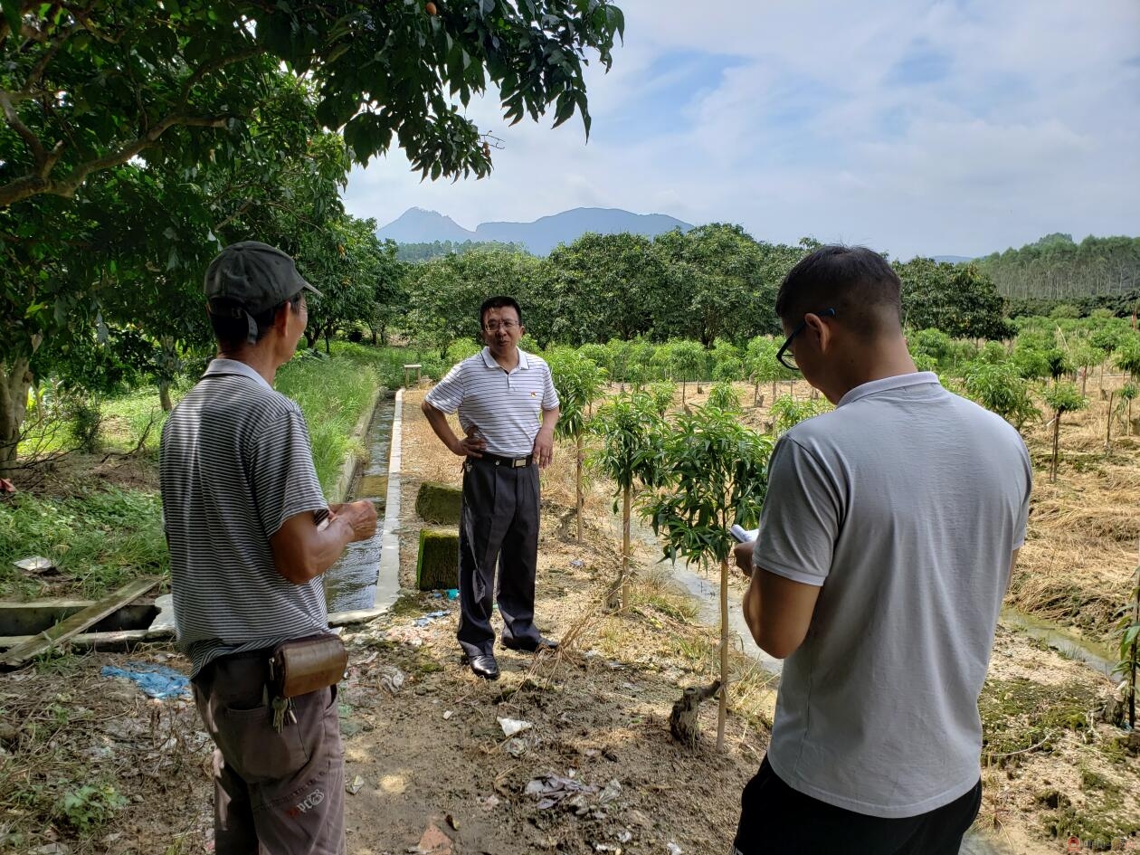 6月27日上午,陈健兵同志一行三人深入到湴江村贫困户种养项目的农地里,与贫困户进行面对面的亲切交谈,了解桃花、青枣种植和蜜蜂养殖等项目的种养、收成、销路问题,同时鼓励他们要积极克服困难,在党和政府的惠民政策扶持下,依靠自己的勤劳和智慧, 早日脱贫致富。调研结束后,陈健兵同志与大家一起分享调研心得,指出:今年雨水天气较多,种养项目的进展情况受到一定影响,驻村干部一定要时刻关心着这些具有“造血”功能的致富项目,尽心尽力帮助贫困户们解决生产生活遇到的难题。