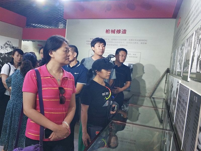 在教官的带领下,党员老师们先后参观了霹破石村昌延联合县政府旧址、沙塘沟村“平北红色第一村”纪念馆。大家集中观看了《平北红色第一村纪录片》,仔细聆听了革命先烈的抗战事迹。一幕幕鲜活的战斗场景、一处处真实质朴的展品唤起了大家对那些在艰苦卓绝的战争年代,投笔从戎、浴血奋战、献出年轻生命的革命先烈们的崇敬之情。