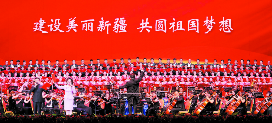 不忘初心,九十八个春夏秋冬;牢记使命,九十八载砥砺奋进。“这是强大的祖国,是我生长的地方……”气势恢宏的交响合唱《我的祖国》拉开音乐会帷幕。《伟大的北京》《站在草原望北京》《草原上的金太阳》《世世代代铭记毛主席的恩情》《党啊,亲爱的妈妈》一组歌曲联唱,表达着新疆距离首都北京虽远,但各族人民的心始终与以习近平同志为核心的党中央紧紧地贴在一起、紧紧地连在一起;交响合唱《我和我的祖国》,女声独唱《帕米尔,我的家乡多么美》《我爱你,中国》,男声独唱《把一切献给党》《祖国,慈祥的母亲》,旋律优美、感人至深,赞美伟大的党、富饶的祖国、美丽的新疆;二胡协奏曲《唱支山歌给党听》《红梅随想曲》,钢琴协奏曲《黄河》,合唱《不忘初心》《各族儿女手拉手》《我们新疆好地方》,配乐诗朗诵《祖国的怀抱中》等节目,用一曲曲时代之音,展现新疆各族干部群众对党忠诚、热爱祖国、珍视民族团结、建设美丽新疆的良好精神面貌。音乐会精彩纷呈,各族观众掌声如潮。