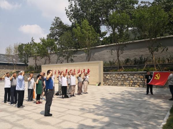 参观后,大家以重温入党誓词的方式缅怀先烈。面对用鲜血染成的党旗,全体党员高举右拳,重温入党誓词,坚定对党的信仰和理想信念。