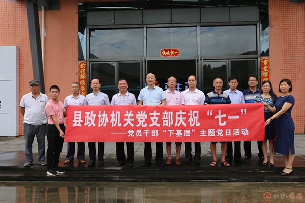 6月26日,县政协党组书记、主席赵仲轲,副主席蓝山鹰、何高者率队到龙山镇开展庆祝“七一”暨党员干部下基层主题党日活动。龙山镇委副书记、镇长梁艳文一同参加。