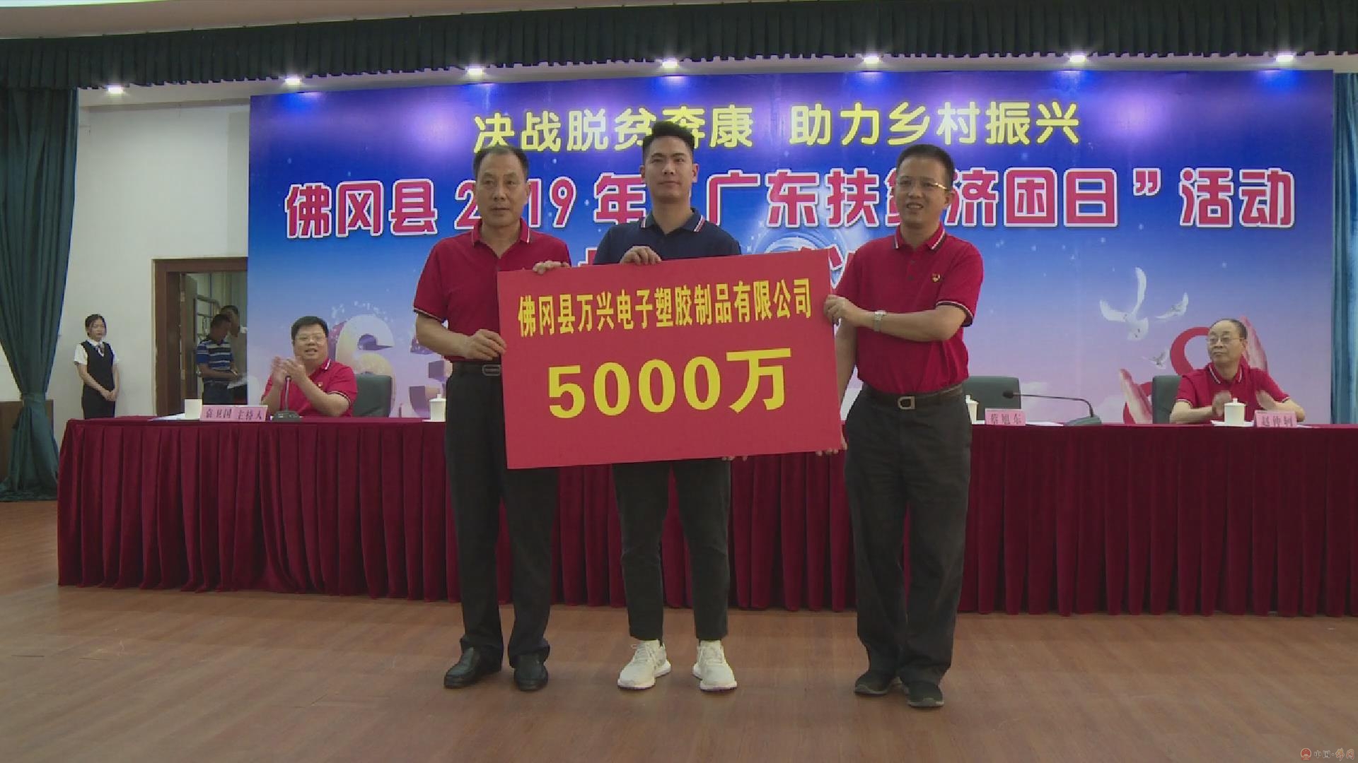 6月28日下午,我县在人民中心礼堂举行“广东扶贫济困日”活动捐款仪式,县四套班子领导、爱心企业人士纷纷捐款献爱心,其中佛冈县万兴电子塑胶制品有限公司现场捐赠款物价值达5000万元。