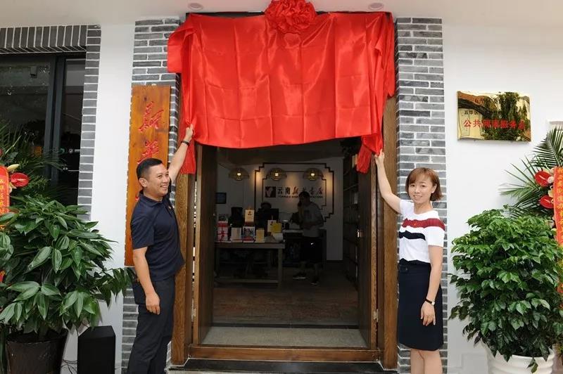区委常委、区委宣传部部长李劲与昆明新华书店连锁有限公司党委委员副经理段朝耀一起为云上书院揭牌。