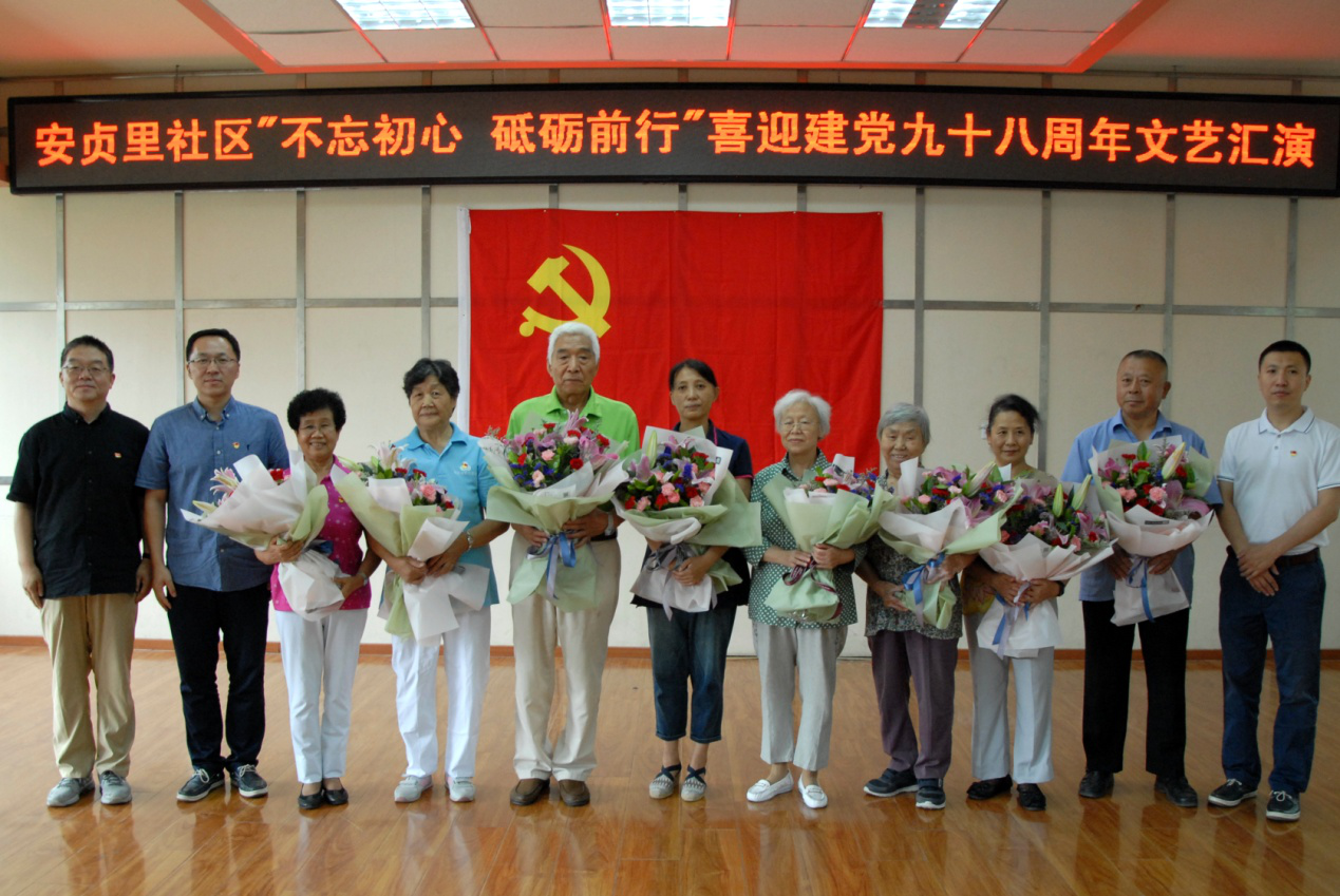 按照办党组、党总支关于纪念建党“八个一”的活动要求,机关党支部于2019年6月27日上午,受邀参加安贞里社区举办的主题为“不忘初心、砥砺前行”的文艺汇演活动,共同喜迎中国共产党建党98周年华诞。