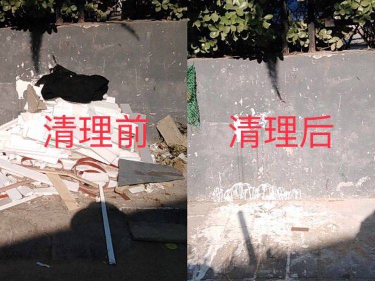在活动开始前,赵桂芹书记针对此类问题进行了详细部署,并结合街道创卫工作提出了明确的工作要求,对当日所有存在混放的垃圾存放点进行查找清理,在之后一个小时的清理工作中,我们共规整堆放点5处,对散落的装修垃圾进行了分类规整,并将生活垃圾清理出来及时清运。