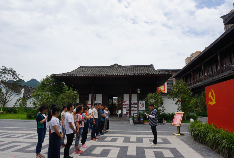 参观结束后,在邓恩铭故居陈列馆前全体党员面向党旗,重温了入党誓词领誓。党支部书记王钢给全体党员上了一堂微党课,他从党的一大13名代表的不同人生谈起,进而联系到共产党人的初心,守住初心,指出对于革命者,对于共产党员来说是至关重要。中国共产党能够取得一个又一个的胜利,正是因为有着对初心的坚守。并对党员提出,希望通过这次参观学习,能够深刻领悟共产党人的初心,传承红色基因,以强烈的责任感和使命感,投入到学校的改革发展建设之中去,为学校的发展、为师生的发展,做出自己应有的贡