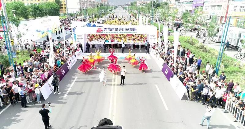 此次比赛突出了“体育+旅游”概念,设置了吉木萨尔天山马拉松嘉年华,包含彩虹跑、万人手印墙等趣味活动,让群众和参赛者从不同角度感受吉木萨尔丰富的城市文化。