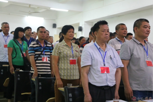 会议结束之后,新当选的汤塘镇人大主席黄志清同志和汤塘镇副镇长郑从模同志在国徽下进行了庄严的宪法宣誓。(邓奕铿、刘伟燕)