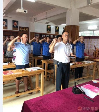 “我志愿加入中国共产党,拥护党的纲领,遵守党的章程,履行党员义务,执行党的决定...... ”在党支部书记邓汝平同志的带领下在座党员、入党积极分子共同举起右手,面向党旗许下庄严承诺,重温入党誓词。