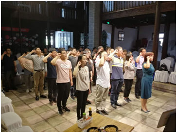 全体党员同志首先观看了南强街巷党支部编排的实景剧《平凡》,从普通人、身边事当中感悟反思党组织和党员的先锋模范作用,既轻松活泼又感人肺腑的剧情深深吸引了在场的党员同志。观看结束后,郭颖副区长带领全体党员重温入党誓词,并结合观剧感受,对党员同志自觉锤炼党性、履职尽责提出三点具体要求:一要坚定信念守初心,以为人民谋幸福为自身追求;二要干事创业勇担当,正视工作中存在的矛盾问题,务实创新做好稳增长本职工作;三要廉洁自律做表率,主动转变作风,在日常工作中发挥先锋模范作用,高标准完成工作任务。周卫华书记要求大家认真落实郭颖副区长