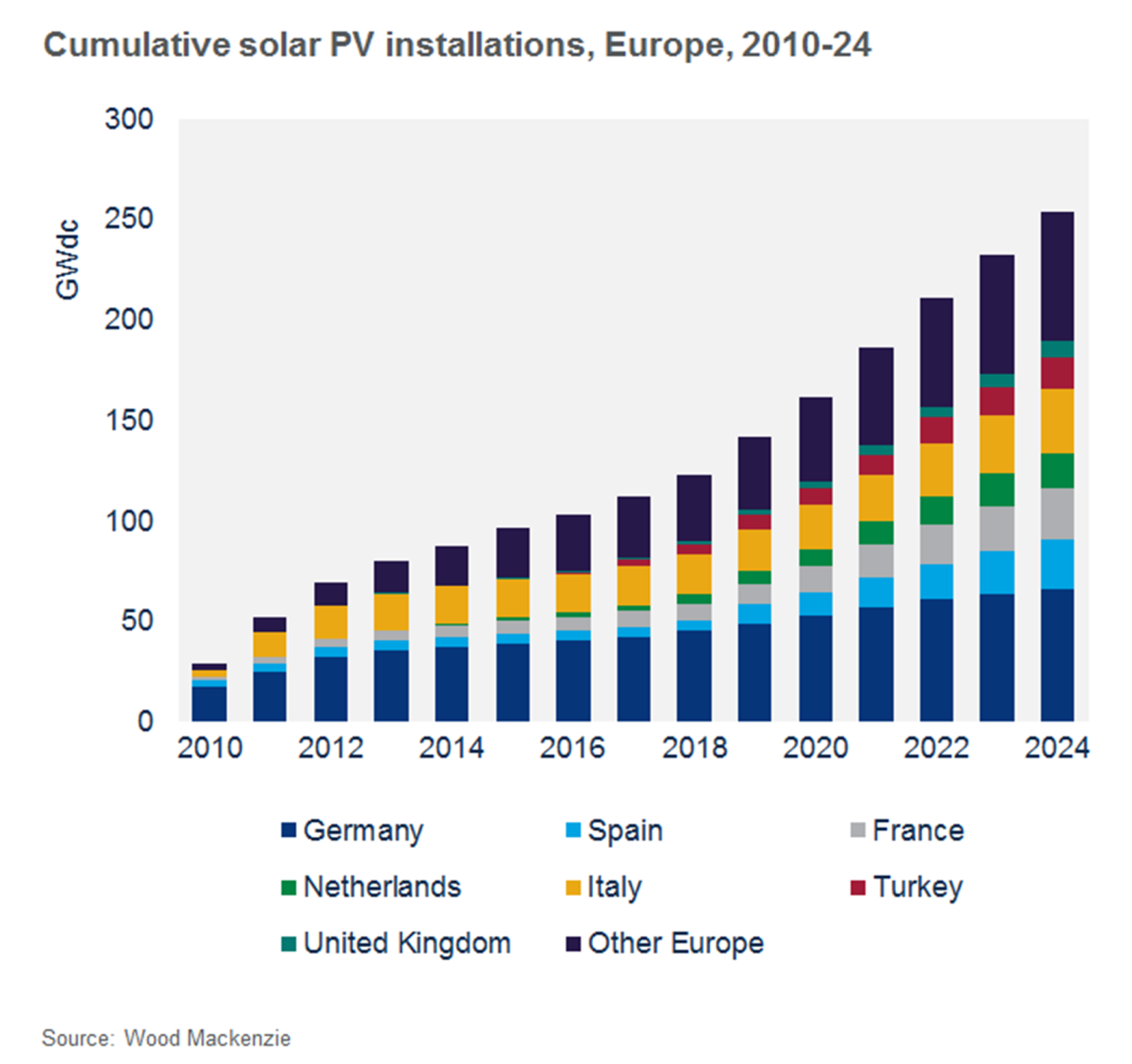 到2024年欧洲太阳能光伏装机容量将超过250GW