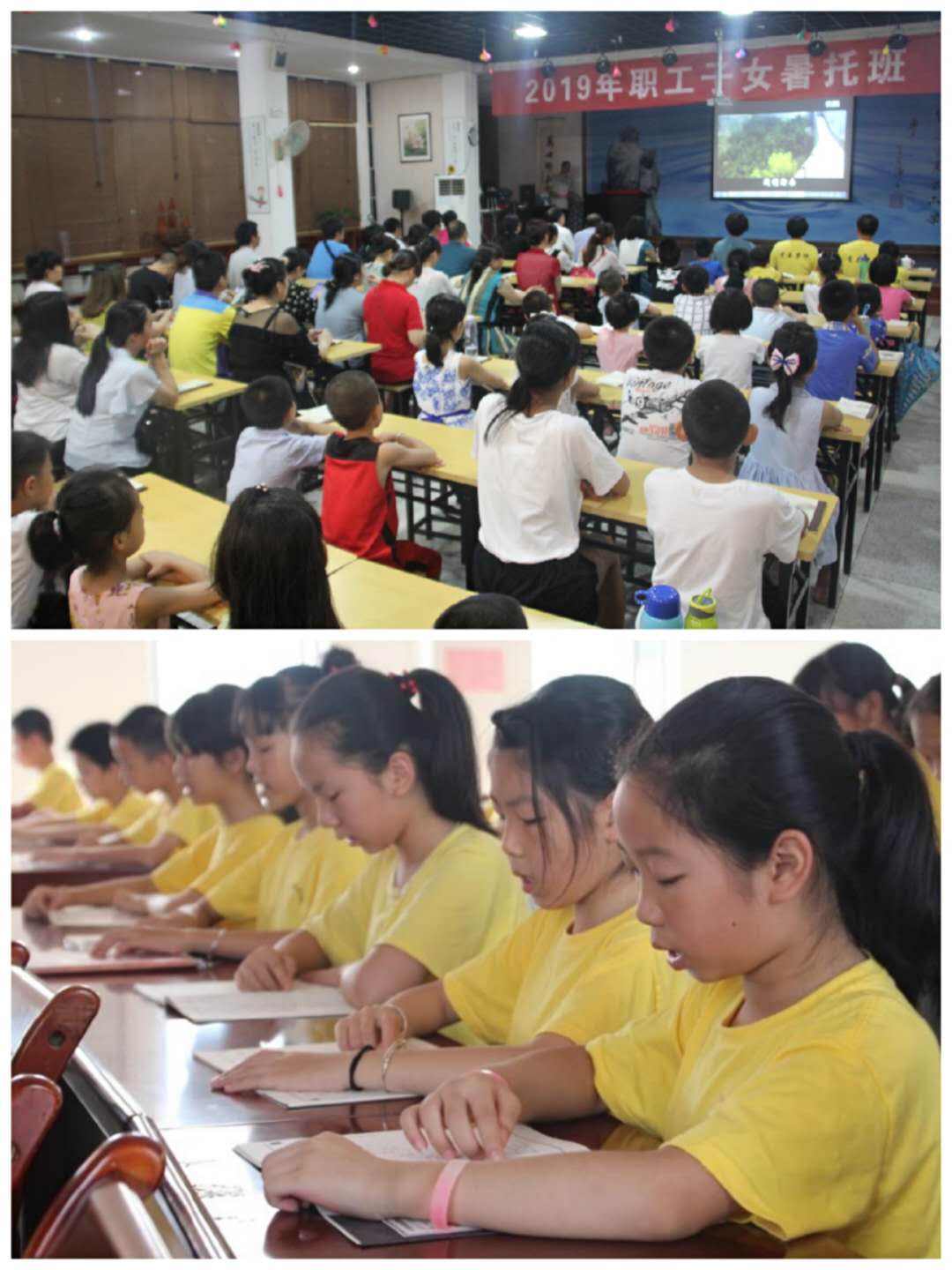 开设职工子女暑托班是2019年沙县总工会实施为职工办10件实事项目之一。受益对象为二年级以上(含一年级升二年级)小学阶段的35名金沙园、金古园区和城区环卫一线的职工子女。暑托班开班时间共计21天,聘请了有着丰富教学经验和管理经验的辅导老师,在托管内容安排上详细的对每一周的课程、用餐、作息进行了合理安排,提供作业辅导、兴趣班、德育讲座等课程,通过“教育”与“托管”相结合,让职工家庭的子女度过一个安全、快乐、有意义的假期,同时帮助职工解决暑假孩子“看护难”问题,让职工家长放下担忧,安安心心工作。