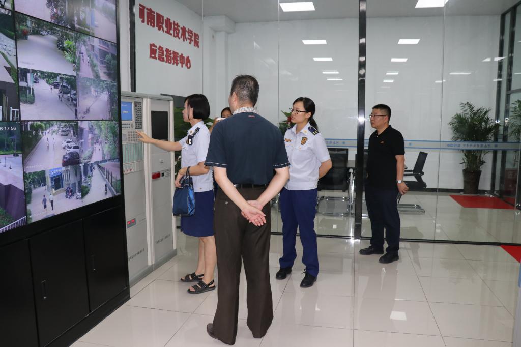 6月27日下午,郑东新区消防救援大队娄雯参谋一行3人来到我校检查指导消防安全工作。学校院长李桂贞、工会主席夏喜利及保卫处有关负责同志参加了会议。会议在行政楼332会议室举行。 会上,李桂贞院长代表学校对检查组的到来表示欢迎,并介绍了我校发展建设、办学特色、办学条件等基本情况。夏喜利主席就我校今年开展的消防安全工作从领导重视、资金投入、消防宣传培训与演练、各类消防安全大检查等方面做了详细的说明。随后,检查组查阅了消防会议记录文件、消防责任书、巡查检查记录及消防培训演练记录等消防档案。 会后,检查组一行来到我院微型消防站、消防控制室、图书馆、学生宿舍及为天食府等消防重点区域进行了实地查看。现场查看消防控制室的值班记录,设置科目检验值班人员消防系统的操作能力,详细检查室内消火栓水压和消防器材是否完好有效,以及整个消防系统的联动运行情况。 检查结束后,检查组对我院的消防工作表示充分肯定,并就此次检查中发现的问题进行了反馈。下一步,保卫处将根据消防救援大队的要求,加强消防检查巡查力度,完善消防基础设施的维护工作,确保我院消防安全。(供稿:陈俊虎,审稿:程宇)