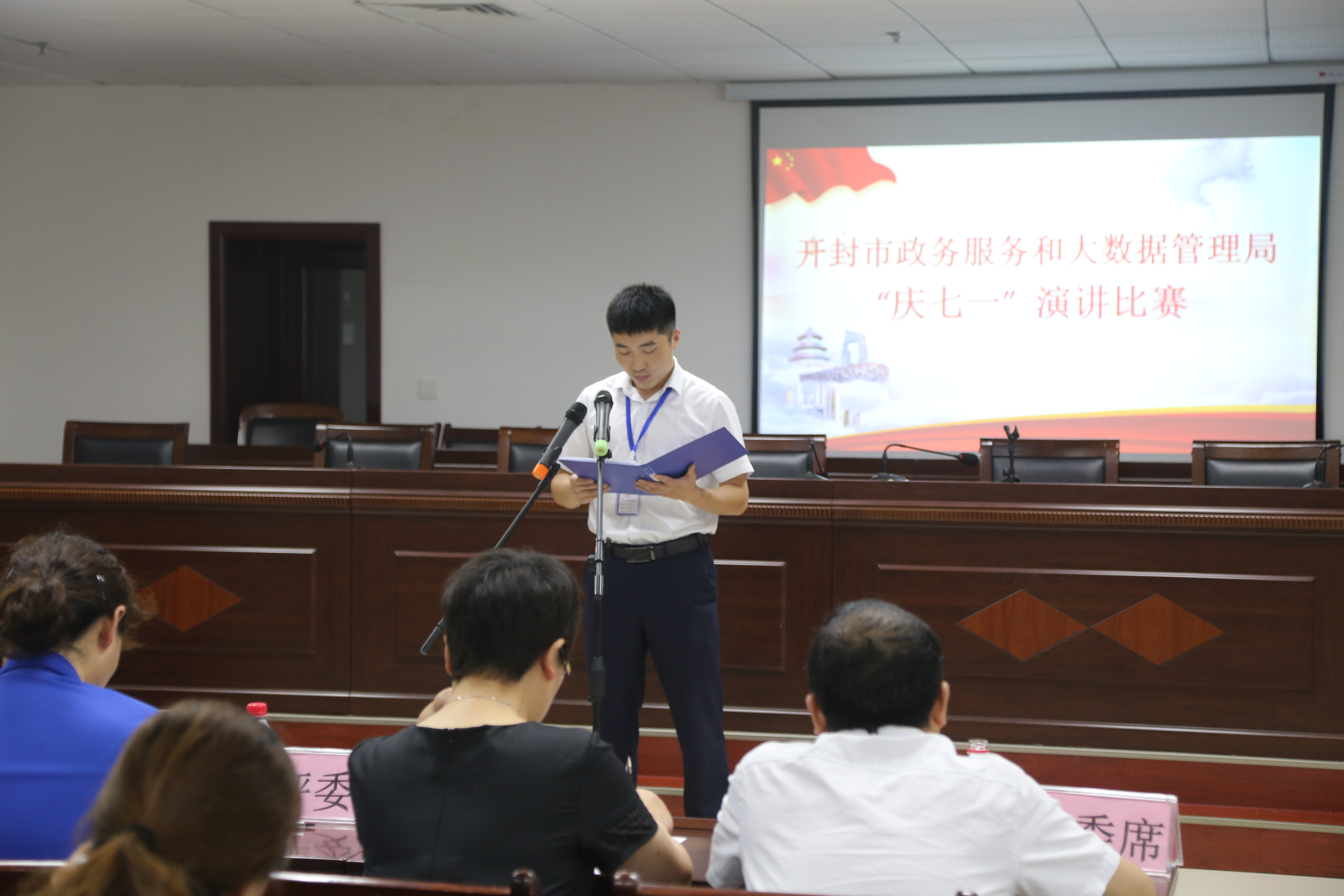 6月28日下午,开封市政务服务和大数据管理局(市民之家)在市民之家六楼西会议室,举行以“不忘初心,牢记使命”、“文明服务我出彩,群众满意在窗口”为主题的“庆七一”演讲比赛,共有市民之家各入驻窗口单位、县区政务服务和大数据管理局23名参赛选手。