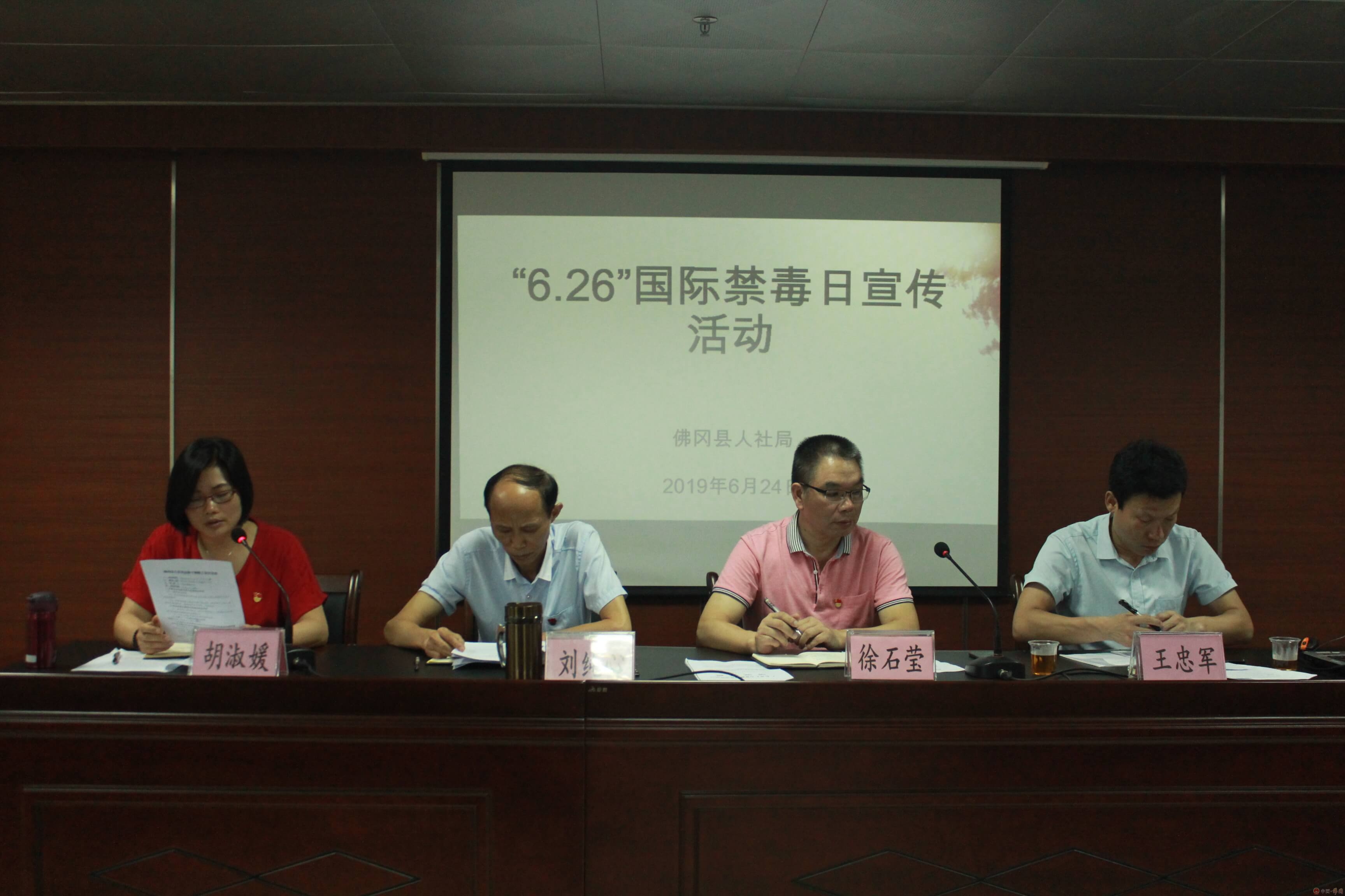 为深入推进“6·26”国际禁毒日宣传,筑牢全民禁毒预防教育宣传根基,2019年6月24日,佛冈县人社局组织全体干部职工开展了“6·26”国际禁毒日宣传活动暨禁毒工作会议。