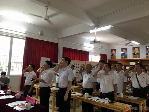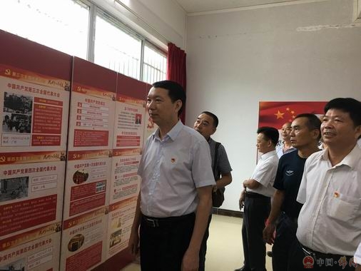 全体党员参观了宝山村“初心讲堂”党史展览区、思源室。通过瞻仰先烈们事迹图片等方式,了解宝山村在抗日战争和解放战争期间的斗争史;并拍摄党员全家福,进一步提高了党员的荣誉感、归属感,增强了凝聚力、向心力。接着由县委政法委支部书记钟华光同志主持带领全体党员在“初心讲堂”重温入党誓词、诵读党章,合唱红歌《没有共产党就没有新中国》和留下感言。