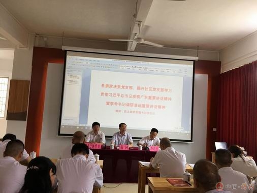 最后由县委政法委常务副书记、驻振兴社区第一书记李功仕同志和大家共同学习习近平总书记视察广东重要讲话精神暨李希书记调研清远重要讲话精神。李功仕表示:作为党员必须旗积鲜明讲政治,抓政治,坚守政治忠诚,树牢“四个意识”,坚定“四个自信”,以正确的认识和行动坚决做到“两个维护”。