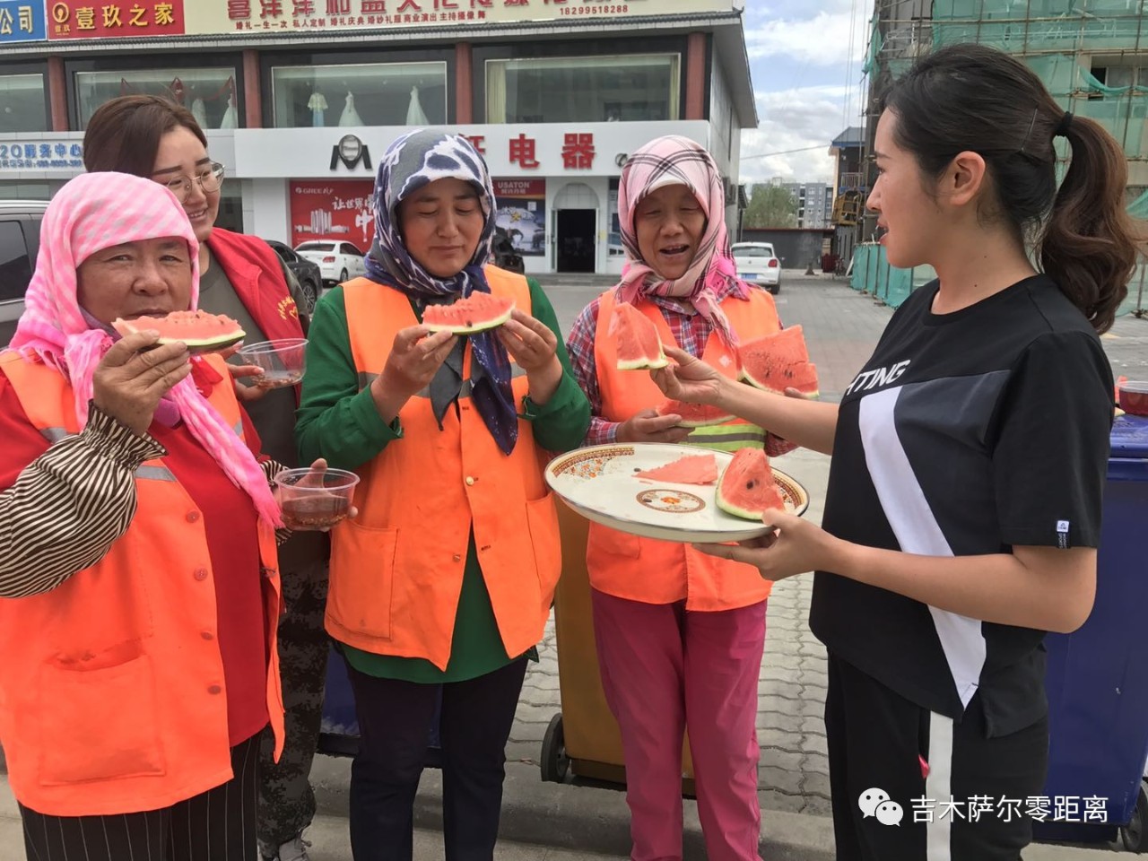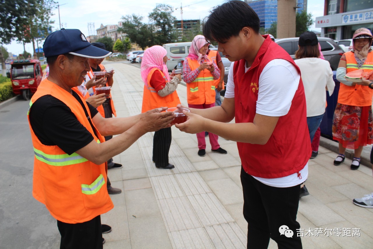 吉木萨尔镇北庭路社区“夏送清凉”慰问一线环卫工人