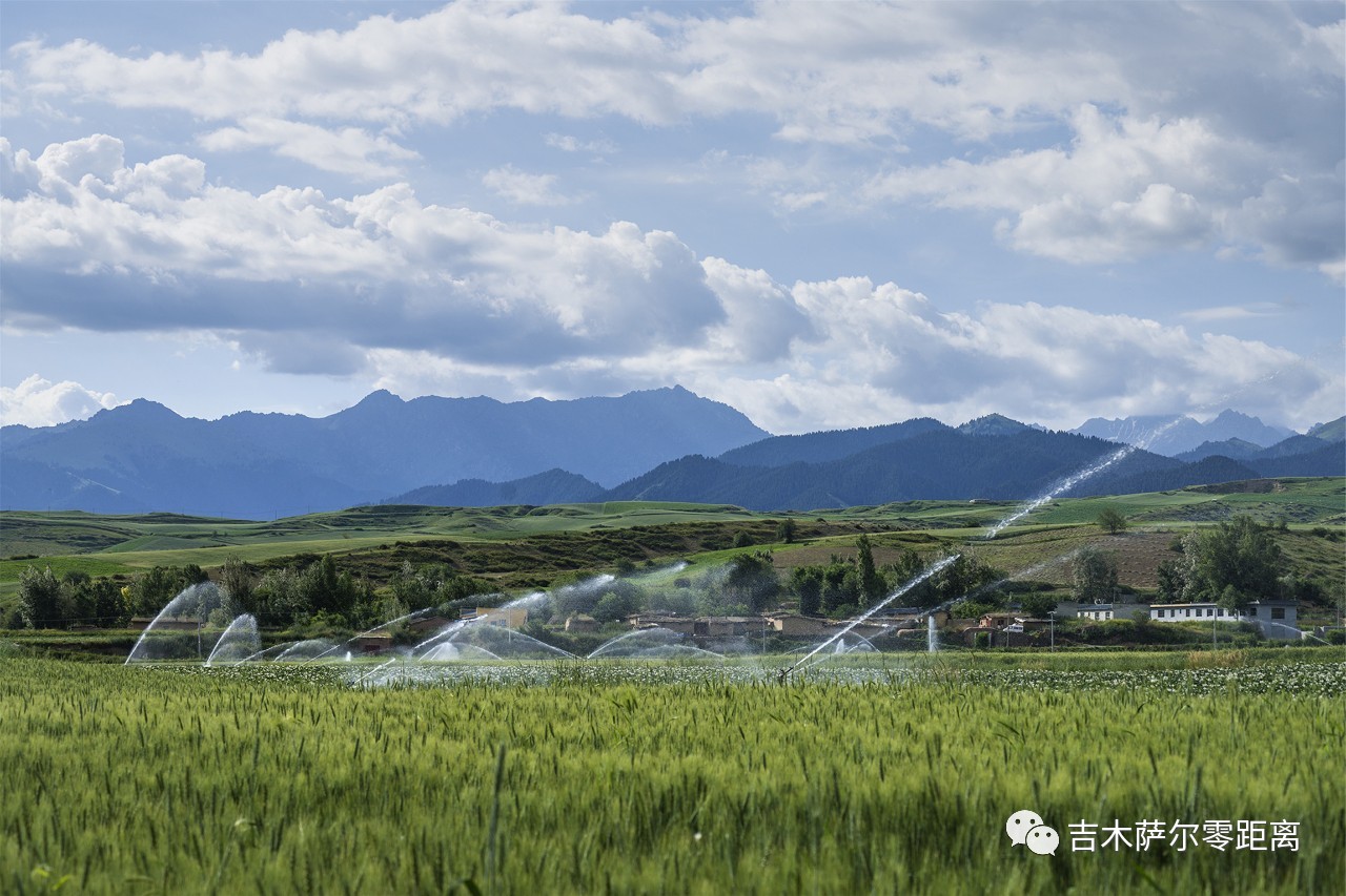 而这一地区又是全疆首个喷灌示范区,每当早晚斜阳,喷灌齐射,像一条条的银链,挥动闪烁,群龙劲舞,形成一个个彩虹,比起城市公园,广场上的小鼻子小眼的喷泉,却是一个十分壮观的大场景了。