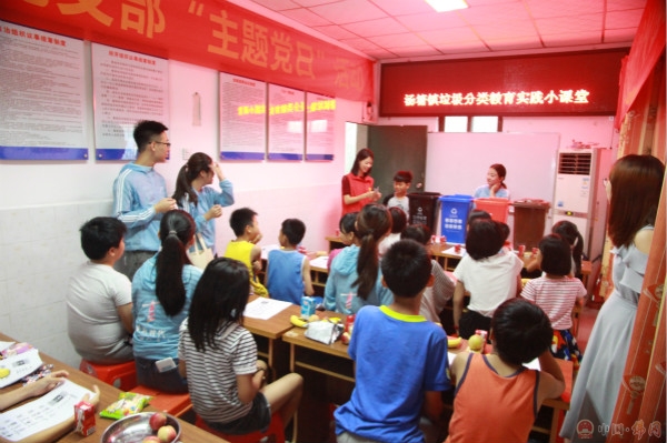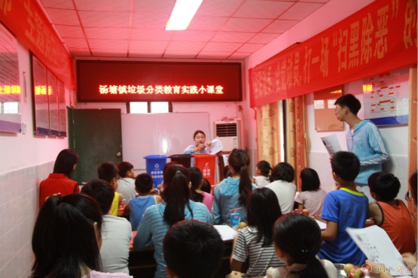 7月11日,汤塘镇联合学院三下乡队伍在汤塘社区开展了“垃圾分类新时尚,美丽汤塘我来帮”垃圾分类小课堂活动。汤塘镇志愿者与学院的志愿者共同为社区少年儿童讲授垃圾无害化处理的知识,通过举例子、抛数据,用生动易懂的语言,让汤塘社区少年儿童明白垃圾处理与环境污染的关系,引导小朋友从小树立垃圾分类、保护环境的意识。小朋友在学习垃圾分类方法后,在志愿者的指引下,现场实践如何对生活垃圾进行分类。