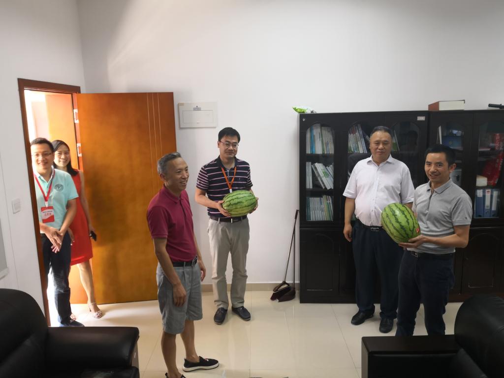 2019年7月26日,校长石晓辉、副校长曾宪军来到花溪校区,亲切慰问暑假期间坚守岗位的教职员工。学校办公室、保卫处、学生处等相关部门负责人参加了走访慰问活动。