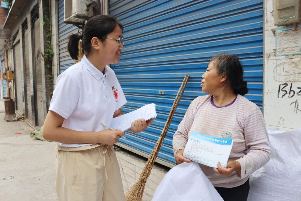 实践服务团成员分为两个小分队,一队设立咨询站点,向路过居民分发宣传单、讲解医普相关知识;另一队则深入镇上9个社区及周边村庄上门入户进行宣讲、调研。在讲解高血压、糖尿病时,服务团成员着重说明了生活作息、饮食规律、年龄等相关因素对疾病产生的影响;对于流感病毒,则从其引起的发热、头痛、咳嗽、全身酸痛、极度乏力等症状讲起,并告诉居民可以通过多开窗通风、多运动等方式有效预防该类流行性疾病;对于如何有效丙肝,服务团成员告诉村民,一定要远离不洁净的医疗器械,到正规诊所、医院看病问诊;在谈及艾滋病时,一部分居民回避不谈,服务团成员们则针对此疾病耐心地向村民们作了详细正确的解释。