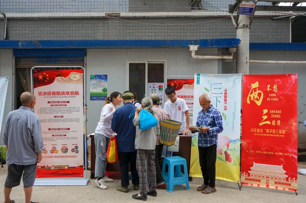 据驻村第一书记田源介绍,此处五保户为集中供养,共有4位,主要为无法定扶养义务人、无劳动能力的老人及无生活来源的贫困村民,其住房由苏马小学改建而成。药生社会实践服务团来到五保户的住处,为每一位老人送上自制慰问品,并与他们面对面、手牵手地交底谈心,进一步了解他们的基本情况;老人们极其贫困,大多无子女,体弱多病且基本丧失劳动力。在与一位腿脚不便的老人聊家常时,得知他曾是来此地务工的木匠,由于多方面原因选择在此地扎根;在谈及现在生活状况时,他不禁感激道:“虽然我是外地人,但当地政府在我无劳动能力后一直对我进行帮扶和关怀,国家政策保我们吃、穿、医、住、葬,我对现在的生活十分满足。”