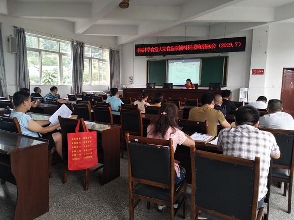 为保证2019 ?-2020 ?学年度学校师生就餐需要,7月12日上午10点,幸福中学伙食团大宗食品原辅材料采购招标会在幸福中学会议室进行。