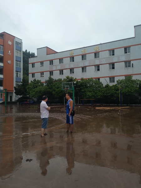 2019年8月2日晚8:00 开始沐川县出现大暴雨,最大雨量出现在幸福乡龙门村(291.9mm)。晚上10:00左右由于漂流小船堵塞了桥洞,河水开始上岸并涌入幸福中学,幸福中学值班人员迅速上报邹晗校长,邹晗校长第一时间到校并采取应急措施。