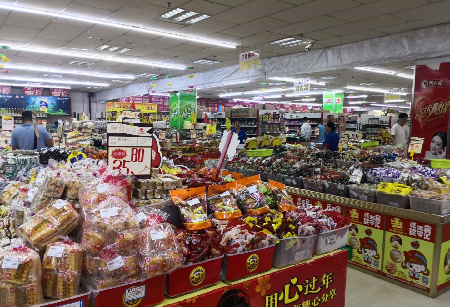 8月8日,记者在百姓购物较为集中的鸿新百汇、曙光商场等大型商场里看到,粮油、干果、糕点等各类商品整齐有序地摆放在货架上供顾客选购,不仅质量有保障,价格也有所下调。