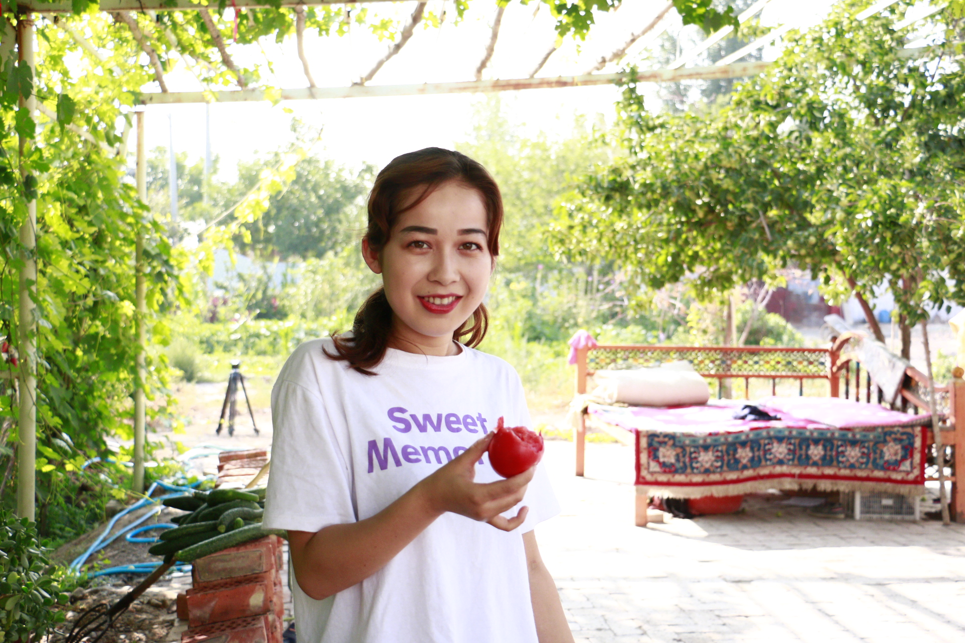 麦迪努尔·阿不都热衣木今年把院子里闲置的地方充分利用起来,全部种上了辣椒、西红柿、豆角等蔬菜,既能自给自足,多余的蔬菜还能拿来卖,增加收入。