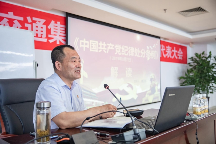 郭卫东同志分别从《条例》修订的历史背景、《条例》修订的重大意义、《条例》修订的主要内容、新《条例》的解读、《条例》的贯彻落实等五个方面进行讲解,强调要紧密联系工作实际,统筹安排,确保《条例》正确适用、工作有序衔接。张建强同志以回顾中国近代史为切入点,通过“国共合作” “南昌起义”“秋收暴动”等一系列历史事件证明了“只有共产党才能领导中国,只有共产党才能救中国”的真谛。通过刘青山、张子善贪污案,以史为鉴,严明党纪,重申全面从严治党永远在路上的重要意义。