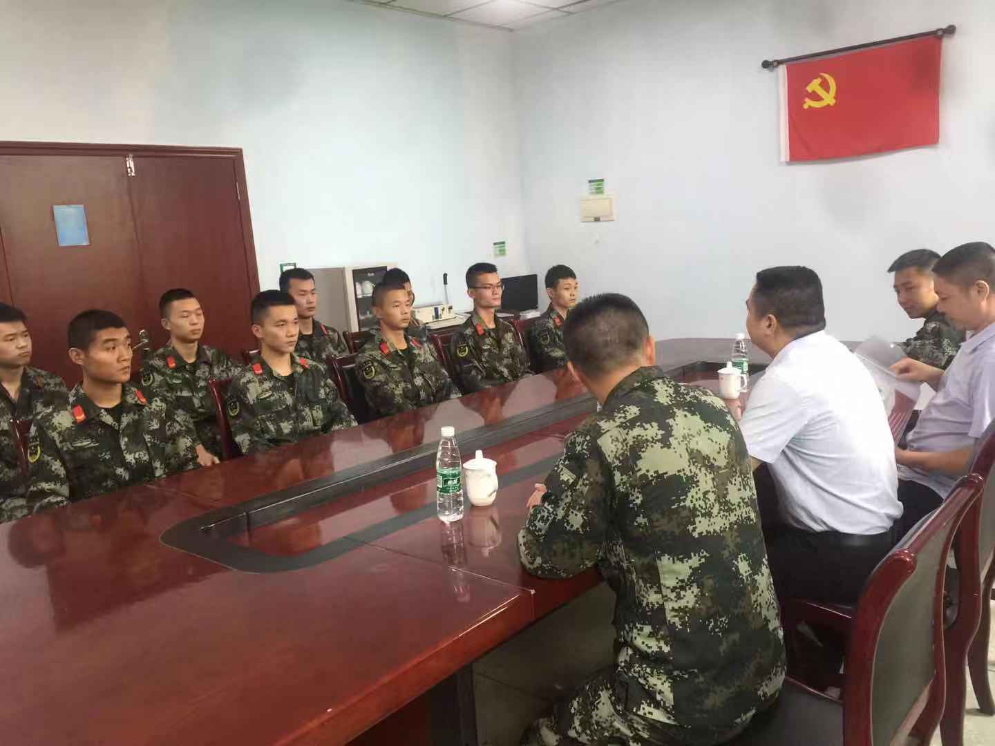(退役军人局副局长包远敏为战士们宣传相关政策)