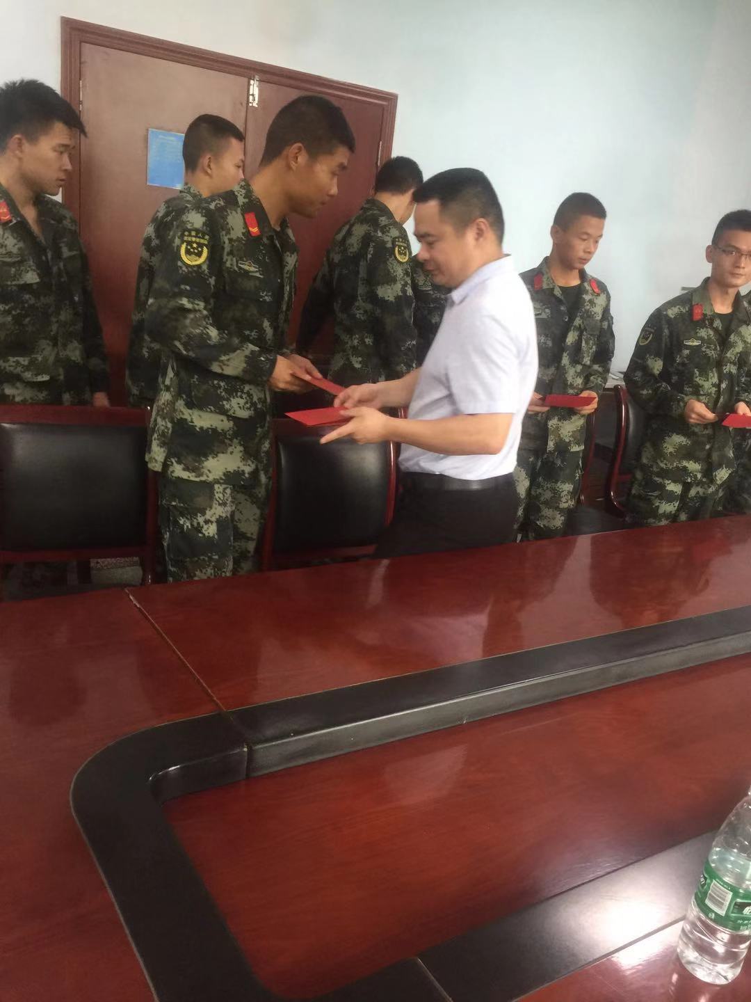 (退役军人局副局长包远敏为战士们发放慰问金)