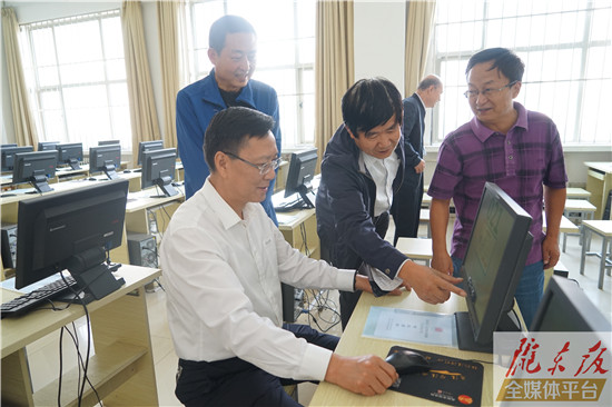 杨涛一行来到陇东学院各考场,全面巡查了考点计算机配置、机位总数及设置情况、网络配置、监控设备、电力保障及学校周边环境。