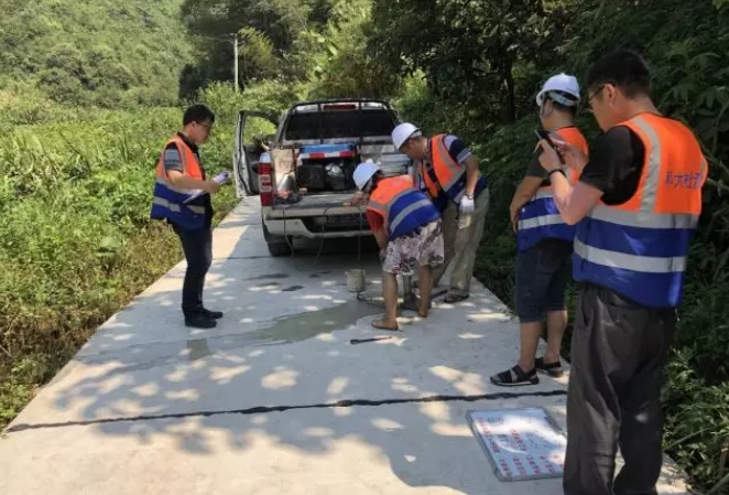 此次志愿帮扶检测工作由湖南科大工程检测中心与平江县交通建设质量和造价管理站两家单位共同进行,共计安排5名现场检测人员、2名室内检测人员、2台车辆、1台路面钻芯机,随机对城关镇、瓮江镇12个农村道路项目,20余公里农村公路进行检测,检测依据相关标准对每个项目的水泥混凝土路面抽3个芯样进行面层厚度和弯拉强度检测评定。