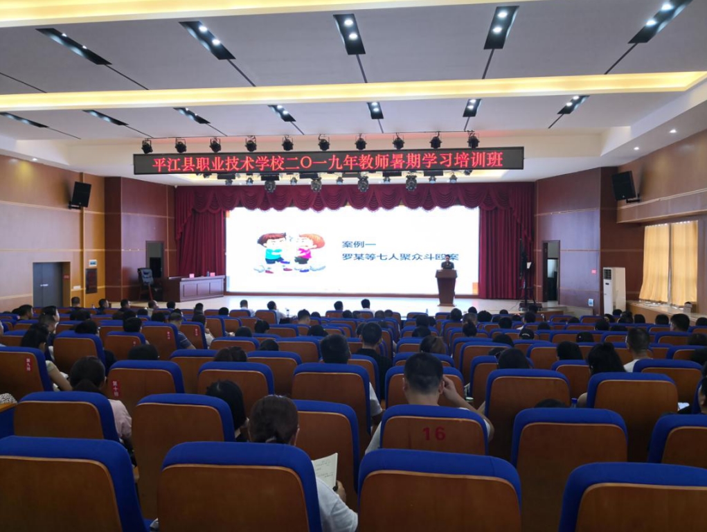 为进一步加强教师法制教育,提升教师法治意识。8月22日下午,在平江县职业技术学校2019年教师暑期学习培训班上,县人民法院刑事审判庭法官给全校200余名老师带来了一节主题为《提升法治意识,做新时代青少年的护航人》的法制教育课。