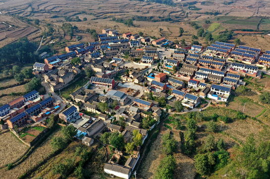这是10月13日无人机拍摄的山西省晋城市陵川县西河底镇铺上村的屋顶光伏电站。