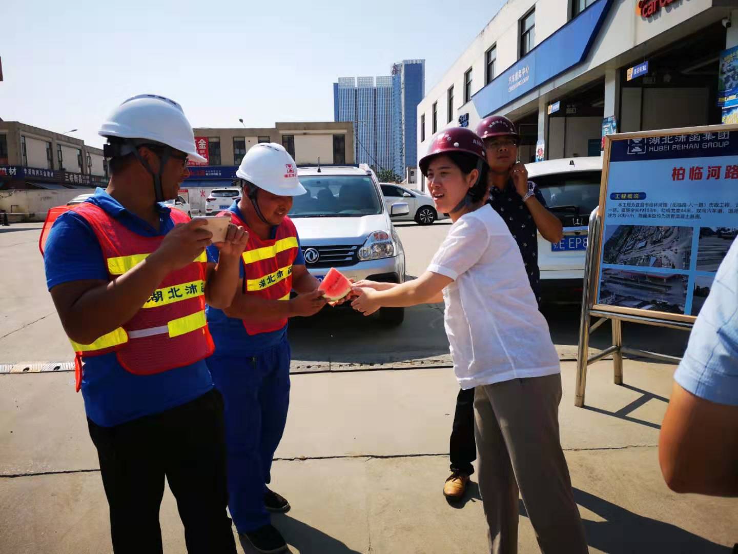 近日,宜昌高温酷暑天气持续。8月15日,市城建项目管理中心副书记、副主任张美带领工会相关人员对柏临河路改造项目开展“送清凉进工地”慰问活动。?