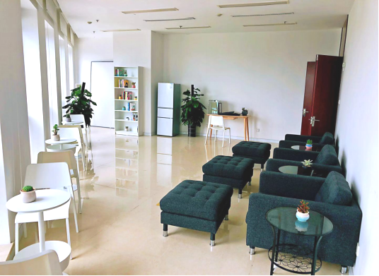 华苑“爱心妈咪之家”位于华苑车辆段控制中心大楼A408室,于工作日期间应需开放,为运营集团孕期、哺乳期、患重大疾病恢复期的女职工提供一个私密、干净、舒适,安全的休息场所。房间内配备了沙发、脚凳、茶几、书桌、椅子、书架、镜子、衣帽架、冰箱、消毒柜、绿植、母婴图书等设备设施。房间定期巡视维护,保障环境卫生和安全可控。