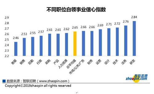 智联招聘发布了《2019年白领秋季跳槽及职业发展调研报告》(以下简称报告),全方位揭秘2019年秋季白领的事业发展行动和预期。报告显示,白领事业信心指数2.65,低于去年,而白领跳槽意愿高于去年,近六成白领已经付诸行动;95后跳槽更在意薪酬,70后跳槽更重前景;近六成白领考虑加入城市服务行业,民宿房东最受青睐;近七成白领看好5G时代。