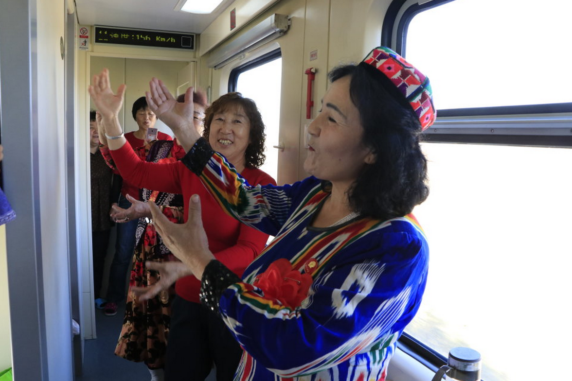 (记者 陈世兵 达吾提)10月26日,在前往北京的列车上,呼图壁县103名优秀民族团结模范将“流动课堂”搬向列车,50多名党员自发聚集在一起,开展“不忘初心、牢记使命”主题教育学习。