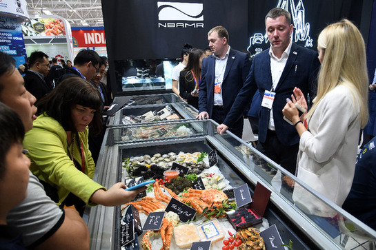 10月30日,一家俄罗斯渔业企业的展台吸引了众多观众关注。