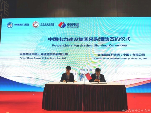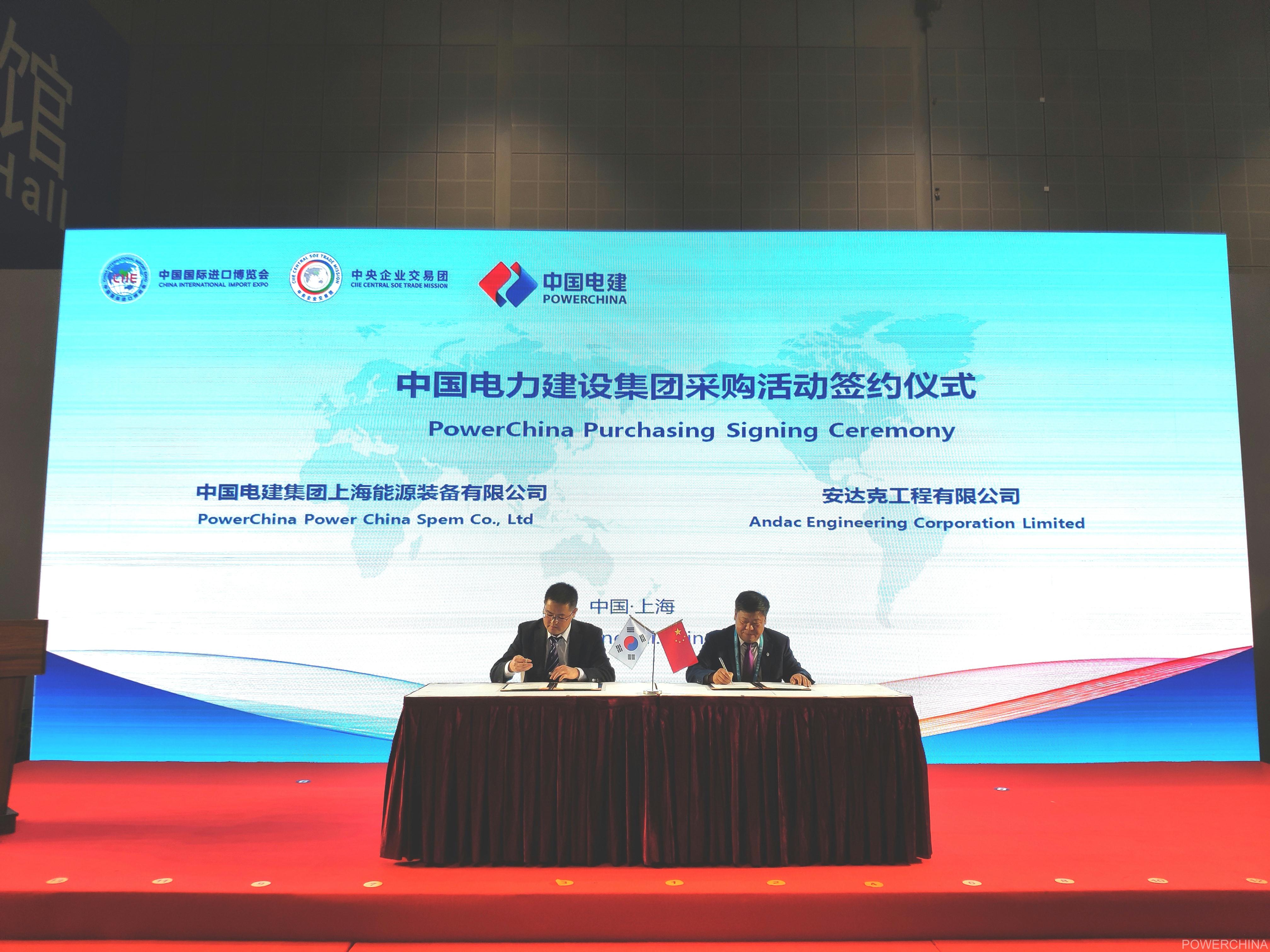 11月7日下午,在第二届中国国际进口博览会中央企业集中签约仪式上,中国电建所属上海能源装备有限公司与外商企业签署两项合作协议。