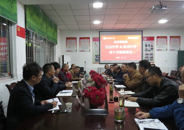 下午,江山中学数学骨干教师吴春法、物理骨干教师李益利、英语骨干教师叶莲军分别与沐川中学数学、物理、英语教研组进行交流对接。随后召开东西部扶贫协作对口交流专题报告会,江山中学校长夏飞华作《保安全、重育人、抓质量、育特色》专题报告。