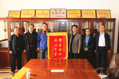 ? 近日,淄博飞源化工有限公司代表,专程来到住建局,送上“情系企业,用心干事”锦旗表示感谢。(高旭)