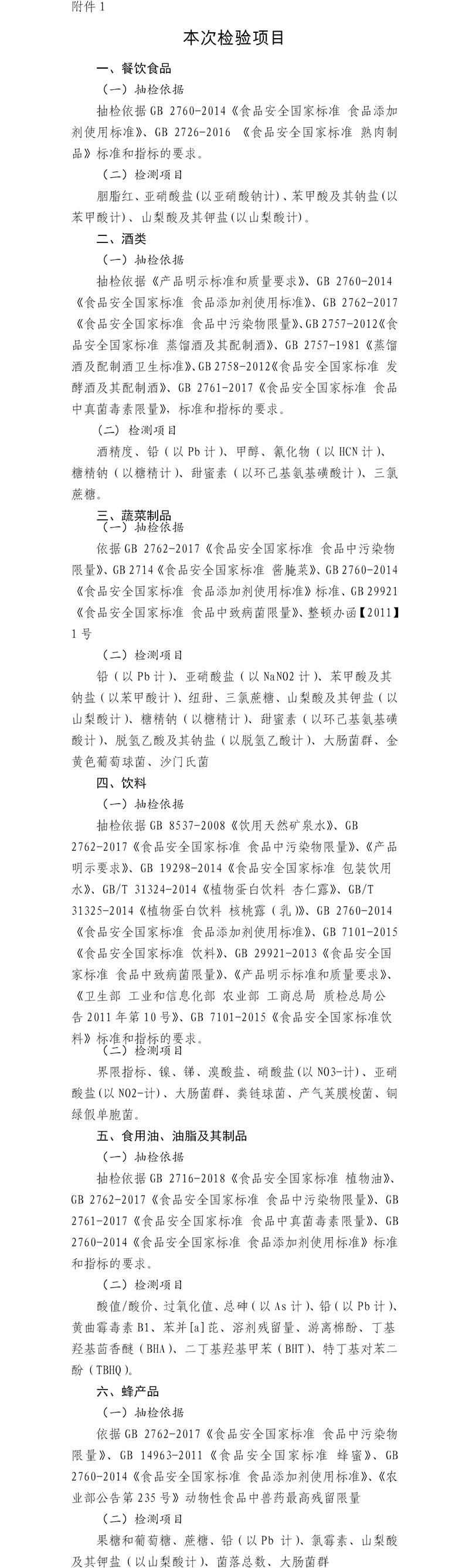 近期,临江市市场监督管理局抽检食品19批次样品,不合格样品0批次。检测项目见附件。具体情况如下: