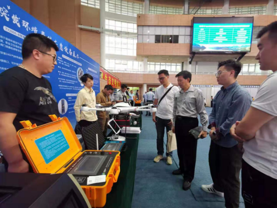 图:比武现场,无人机遥感设备、水质采样器、一体化数字式辐射巡测仪、管线定位仪等环境监测“利器”集体亮相