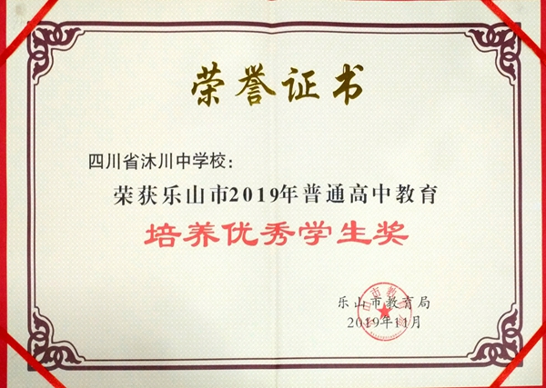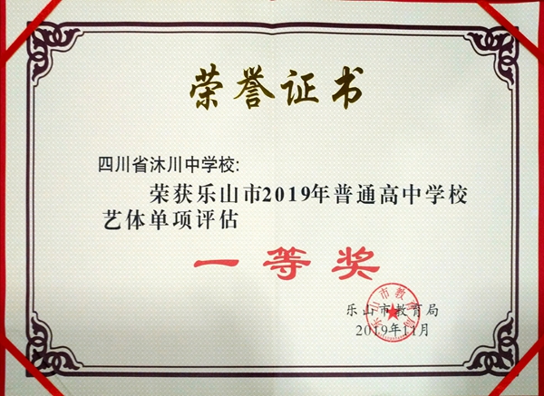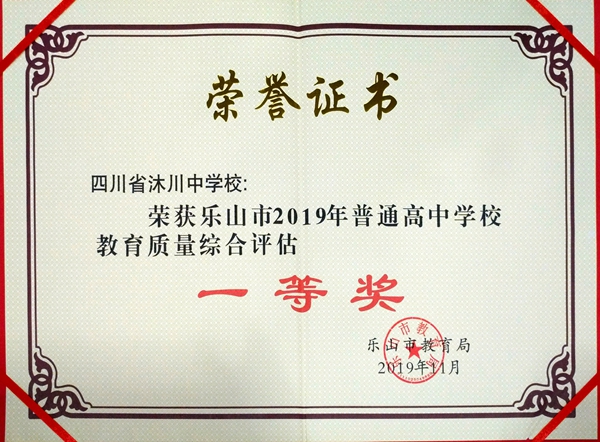 2019年11月11日,在乐山市基础教育工作会上,沐川中学再次斩获乐山市普通高中学校教育质量评估全部最高奖项:教育教学质量综合评估一等奖、艺体教育单项评估一等奖、培养优秀学生奖。